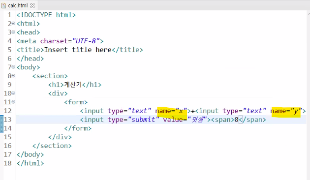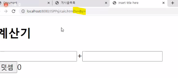 x와 y값을 받아서 사용자화면에 더한 값을 출력해보자
