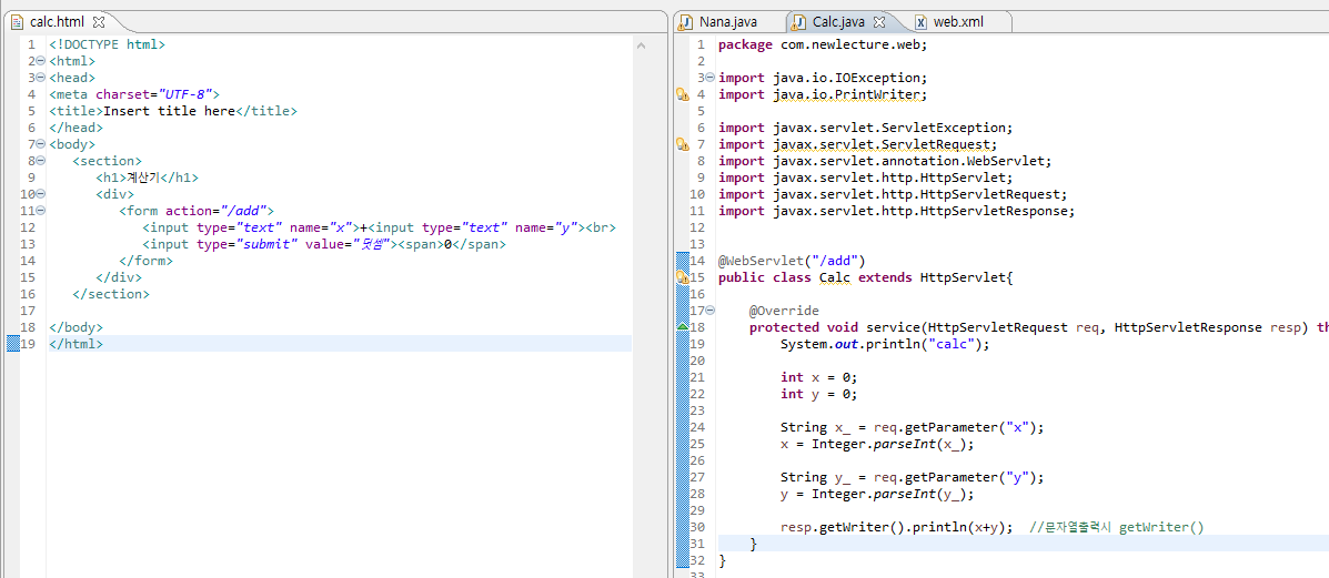 - "/calc" url요청에 맞게 Calc클래스를 수행한다.