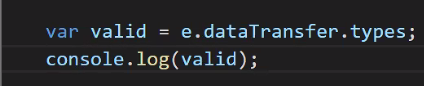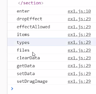 dataTransfer는 드래그할때 가져온데이터를 가지는 객체이다. 어떤속성인지 알고싶다면 ?
