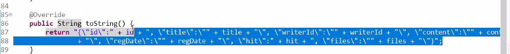 컬렉션일경우 알아서 toString을 호출해서 항목들을 [ , , , ] 로 묶어서 출력해준다.