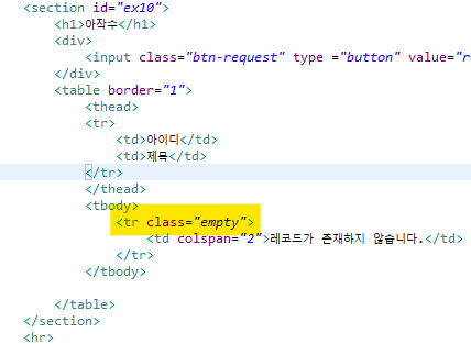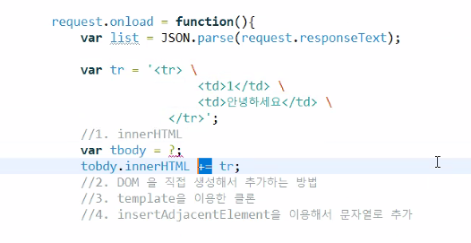 HTML 문자열 "<tbody>AAA</tbody>"를 개체가 종료되기 전에 tr을 삽입.