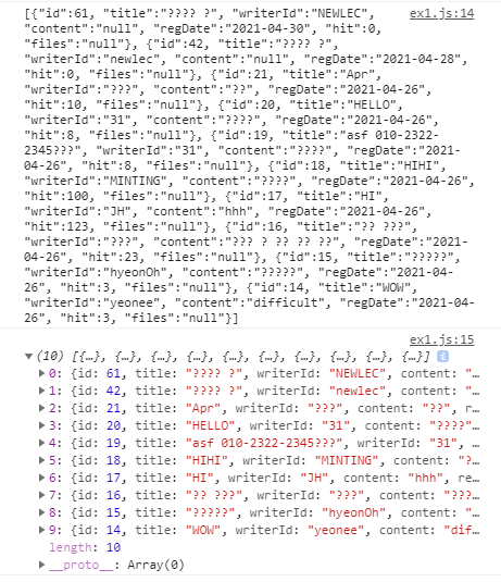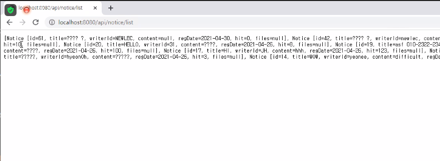 이제 클라이언트에서는 JSON형태의 문자열을 받은거니까 파싱해서쓰면된다