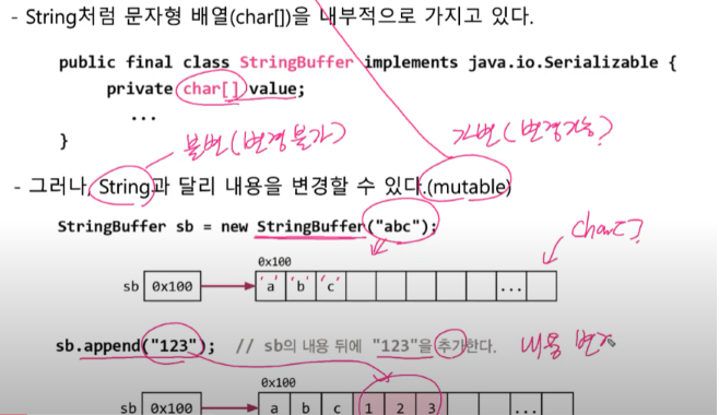 -StringBuffer는 String과는 달리 내용 변경이 가능하다.